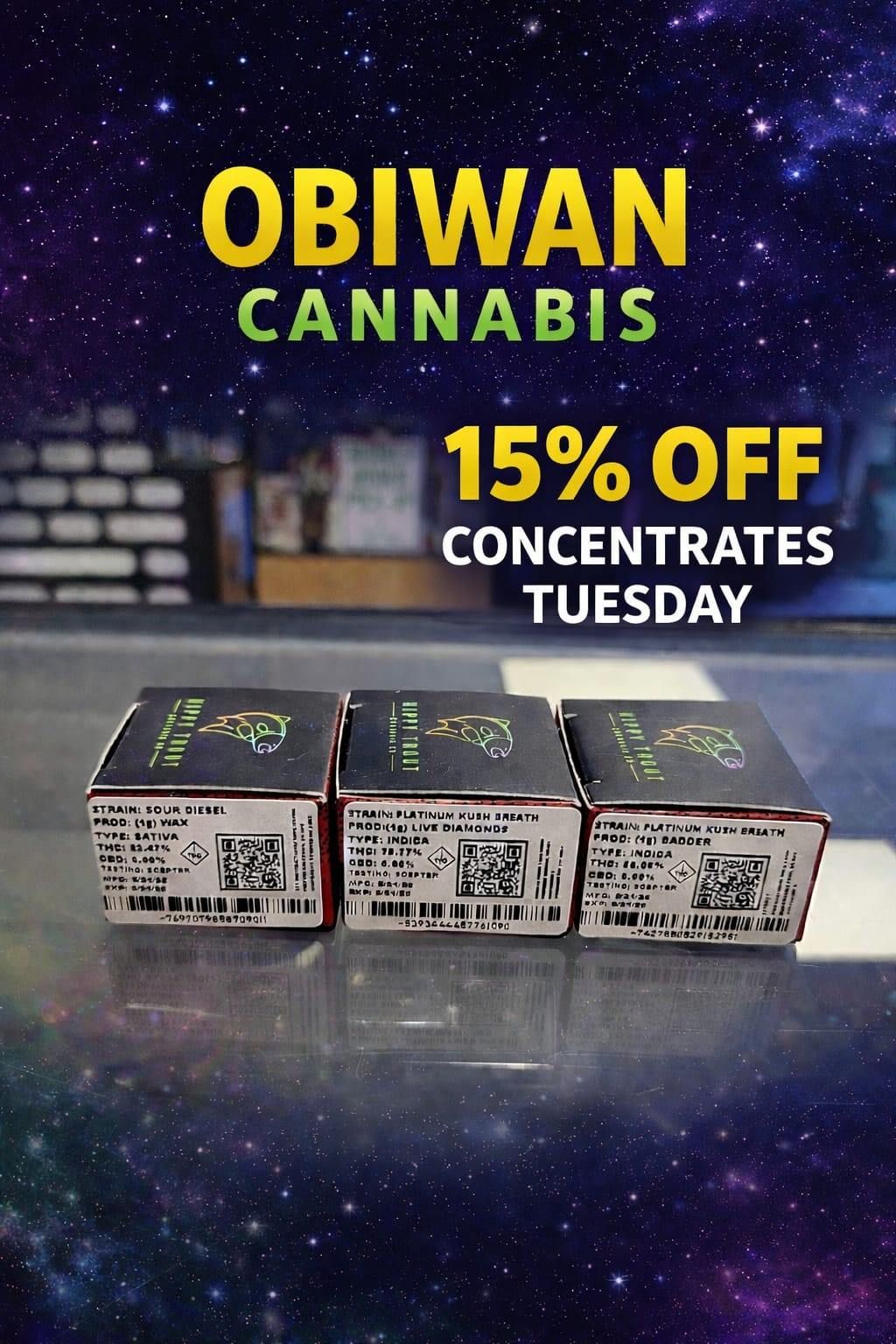 At Obi Wan Cannabis, we blend Star Wars-inspired themes with the finest locally grown flowers of New Mexico, creating an experience where the mystical intertwines with the modern. Our sanctuary radiates like the brightest star in the galaxy, showcasing exclusive brands like Elevated, Harmony, and Hippie Trout, alongside daily deals and community-focused promotions.